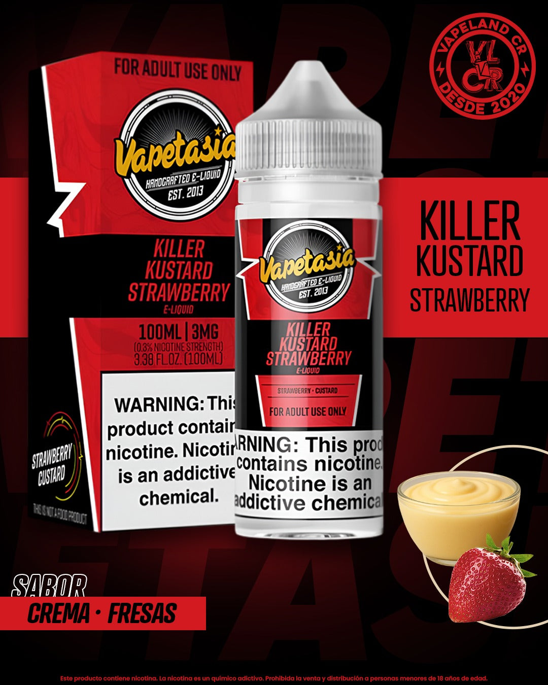 Vapetasia Killer Kustard Strawberry 3mg y 6mg.